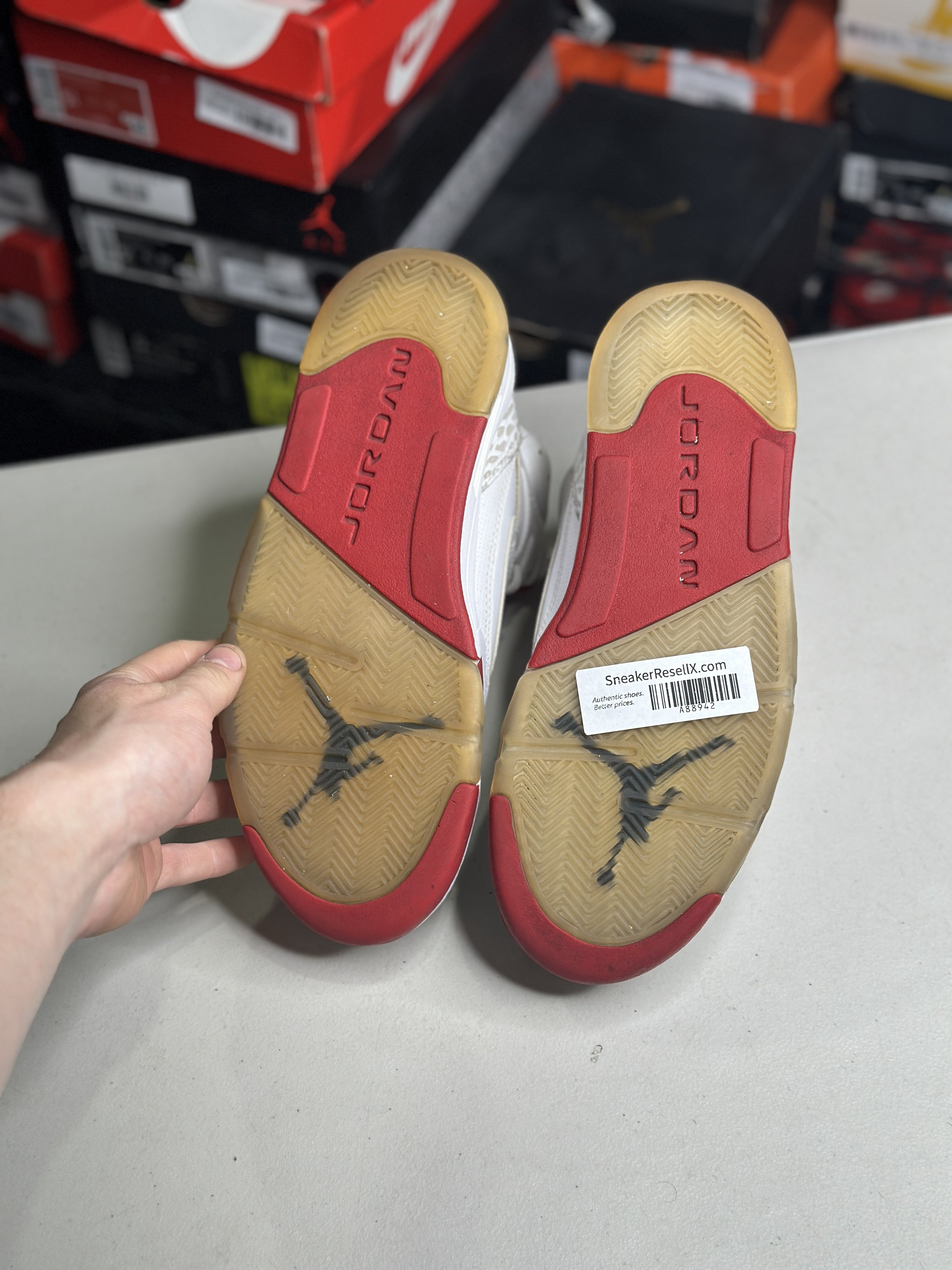 Shop by size: Clear Filters Filter Clear Filter Quick View Air Jordan 6 Retro Red Oreo (Size 10) $99.99 Quick View Nike AF1 Undefeated (Size 8) ° $59.99 SOLD OUT Quick View Nike Air Foamposite One Sport Royal (Size 9.5) ° $79.99 Quick View Nike Hot Step Air Terra Drake NOCTA Snakeskin Pink DS (Size 9.5) $79.99 Quick View Nike Hot Step Air Terra Drake NOCTA Snakeskin Light Pumice DS (Size 9.5) $79.99 Quick View Nike Cortez SP Union Sesame (Size 11) $59.99 Quick View Reebok Question Mid Mocha Toe (Size 11.5) $39.99 SOLD OUT Quick View Air Jordan 1 Retro High Light Smoke Grey (Size 11.5) $79.99 Quick View Yeezy Foam RNNR Ochre (Size 10) $69.99 Quick View Air Jordan 4 RM Black Metallic (Size 9.5) $69.99 Quick View Nike Air Presto Hello Kitty (2022) (Size 12) $49.99 Quick View Nike Dunk Low PRM Red Stardust DS (Size 13) $79.99 SOLD OUT Quick View Nike Kobe 9 Elite Perspective (Size 9) $119.99 Quick View Air Jordan 4 Retro What The (Size 11.5) $149.99 SOLD OUT Quick View Nike Kobe 9 Elite Perspective (Size 9) $119.99 Quick View Air Jordan 3 Retro Cool Grey (2021) (Size 11.5) $119.99 Quick View Jordan 13 CP3 (Size 8.5) $69.99 SOLD OUT Quick View Jordan 13 Chicago (Size 11.5) $119.99 Quick View Jordan 1 Red (Size 16) ° $19.99 SOLD OUT Quick View Nike Air Force 1 Low Experimental 'Sail' (Size 10) $49.99 Quick View Jordan 12 Reverse Flu Game (Size 12) $119.99 Quick View Jordan 4 Yellow Ochre (Size 8) ° $79.99 Quick View Jordan 11 Low UNC (Size 10.5) $119.99 Quick View Jordan 5 Off White (Size 9) $199.99 SOLD OUT Quick View Jordan 5 Off White (Size 11.5) ° $149.99 SOLD OUT Quick View Jordan 3 Tinker (Size 9.5) $99.99 SOLD OUT Quick View Yeezy 450 Black (Size 9) ° $39.99 Quick View Jordan 11 Jeter (Size 9.5) $79.99 SOLD OUT Quick View Jordan 6 Maroon (Size 8) ° $29.99 SOLD OUT Quick View Yeezy 350 Yeezreel (Size 10) $99.99 Quick View Jordan 4 Rare Air GS (Size 5) ° $99.99 Quick View Jordan 10 NYC (Size 9) $99.99 Quick View Jordan 11 Snakeskin (Size 11) $119.99 Quick View Nike Dunk Low Panda (Size 9) ° $29.99 SOLD OUT Quick View Jordan 12 Masters (Size 9) $129.99 Quick View Jordan 1 Marina Blue (Size 16) $49.99 SOLD OUT Quick View Jordan 3 Midnight Navy (Size 11.5) ° $69.99 SOLD OUT Quick View Jordan 11 DMP (Size 11) $149.99 SOLD OUT Quick View Air Jordan 1 Retro High '85 OG 'Black White' (Size 5) ° $49.99 Quick View Yeezy Foam Runner Mineral (Size 5) $59.99 Quick View Jordan 10 Charlotte (Size 9) $69.99 SOLD OUT Quick View Jordan 1 Low Black Toe (Size 12) ° $49.99 Quick View Jordan 6 Sport Blue (Size 12) $79.99 Quick View Jordan 12 University Blue (Size 12) $119.99 SOLD OUT Quick View Nike SB Dunk High 'Silver Box' (Size 10.5) ° $79.99 Quick View Jordan 3 Wizard (Size 16) ° $39.99 SOLD OUT Quick View New Balance 9060 Black (Size 11.5) ° $49.99 Quick View Jordan 1 Silver Toe (Size 11.5) $59.99 SOLD OUT Quick View Dunk Low Green Glow DS (Size 10.5) $69.99 Quick View Nike Dunk Low Argon (Size 10) $59.99 Quick View Nike Air Max 95 Lakers (Size 9) ° $59.99 Quick View Nike Dunk Low Pro SB 'Deep Royal Vintage Green' (Size 10.5) $79.99 SOLD OUT Quick View Jordan 5 Sail GS (Size 7) $49.99 SOLD OUT Quick View Yeezy Foam Runner MX (Size 12) $69.99 Quick View Asics Brown (Size 10) $49.99 SOLD OUT Quick View Jordan 1 Shadow 2.0 (Size 10) $69.99 SOLD OUT Quick View Jordan 1 Washed Grey GS (Size 7) $49.99 SOLD OUT Quick View Nike Air Max Multi Color (Size 8) ° $39.99 Quick View Jordan 1 Yellow Ochre GS (Size 7) $49.99 SOLD OUT Quick View Jordan 12 Playoff GS (Size 6) ° $49.99 SOLD OUT Quick View Asics White (Size 8.5) ° $29.99 SOLD OUT Quick View Jordan 12 A Ma Manire (Size 11.5) $99.99 SOLD OUT Quick View Jordan 1 Reimagined Bred GS (Size 7.5) $59.99 Quick View Dior B23 Blue (Size 12) ° $279.99 SOLD OUT Quick View Nike Dunk Low Pink (Size 9.5) $59.99 SOLD OUT Quick View Jordan 4 What The (Size 8.5) ° $119.99 Quick View Yeezy 350 Semi Frozen (Size 9) $99.99 SOLD OUT Quick View Nike Dunk Low Cargo Khaki DS (Size 9) $59.99 Quick View Yeezy Boost 380 'Pyrite' (Size 4.5) $39.99 SOLD OUT Quick View Jordan 1 Palomino (Size 11) ° $79.99 SOLD OUT Quick View Jordan 6 Rings Black DS (Size 9.5) $69.99 Quick View Alexander Mcqueen Red (Size 9) $119.99 SOLD OUT Quick View Asics Grey GT DS (Size 9) $59.99 SOLD OUT Quick View Nike Dunk Low Argon (Size 9.5) $59.99 Quick View New Balance Yellow (Size 10.5) $49.99 Quick View Nike Air Max 270 Red (Size 8) $19.99 SOLD OUT Quick View Jordan 3 Camo (Size 8.5) $79.99 Quick View New Balance Blue (Size 10) $39.99 SOLD OUT Quick View Jordan 4 Yellow Thunder (Size 13) ° $149.99 SOLD OUT Quick View LeBron Solider Blue (Size 10) $49.99 Quick View Dunk Low UNC (Size 11) $59.99 Quick View Air Jordan Spizike Red (Size 8) ° $39.99 Quick View Yeezy 700 Wash Orange (Size 11) $99.99 Quick View Nike Air Foamposite Pro 'Dr. Doom' (Size 12) ° $49.99 SOLD OUT Quick View Yeezy 700 MNVN Silver (Size 10.5) ° $59.99 Quick View Air Jordan 4 Retro 'Cavs' (Size 10.5) $179.99 SOLD OUT Quick View Air Jordan 3 A Ma Maniére (Size 9) $119.99 Quick View Nike Initiator (Size 9.5) ° $19.99 Quick View Pharrell x adidas NMD Trail 'Human Race' (Size 9) ° $39.99 Quick View Off White Rubber Dunk (Size 8.5) ° $69.99 SOLD OUT Quick View Adidas Yeezy Boost 380 Calcite Glow (Size 9.5) $49.99 SOLD OUT Quick View Rebok White (Size 13) ° $9.99 SOLD OUT Quick View Adidas Yeezy QNTM Sea Teal (Size 9.5) $49.99 Quick View Nike Dunk High Baroque Brown (Size 9.5) ° $49.99 Quick View Nike Dunk Low Lottery Pack (Size 9.5) $29.99 SOLD OUT Quick View Air Jordan 1 Smoke Grey (Size 9) ° $59.99 SOLD OUT Quick View Nike Space Jam x LeBron 18 Low 'Bugs x Marvin' DS (Size 9) $69.99 SOLD OUT Quick View Nike SB Air Max Ishod Wair (Size 9.5) ° $19.99 Quick View Jordan 2 Gucci DS (Size 9) $69.99 SOLD OUT Quick View Adidas Yeezy QNTM Amber Tint (Size 9.5) $59.99 Quick View Adidas Yeely Boost 380 Calcite Glow (Size 10) ° $59.99 SOLD OUT Quick View Nike Air Max Green/Red (Size 5.5) ° $39.99 Quick View Nike Air Max Gr