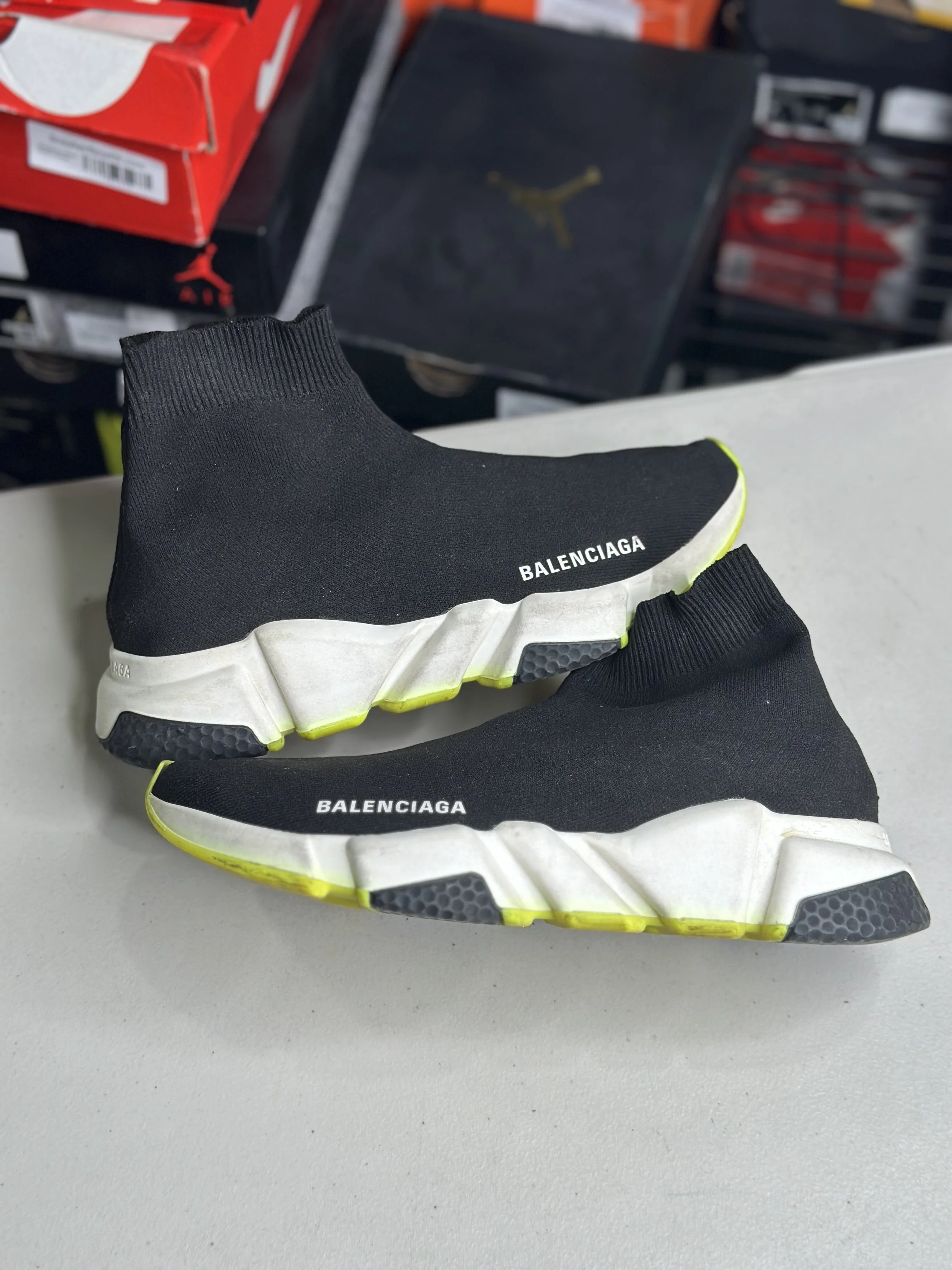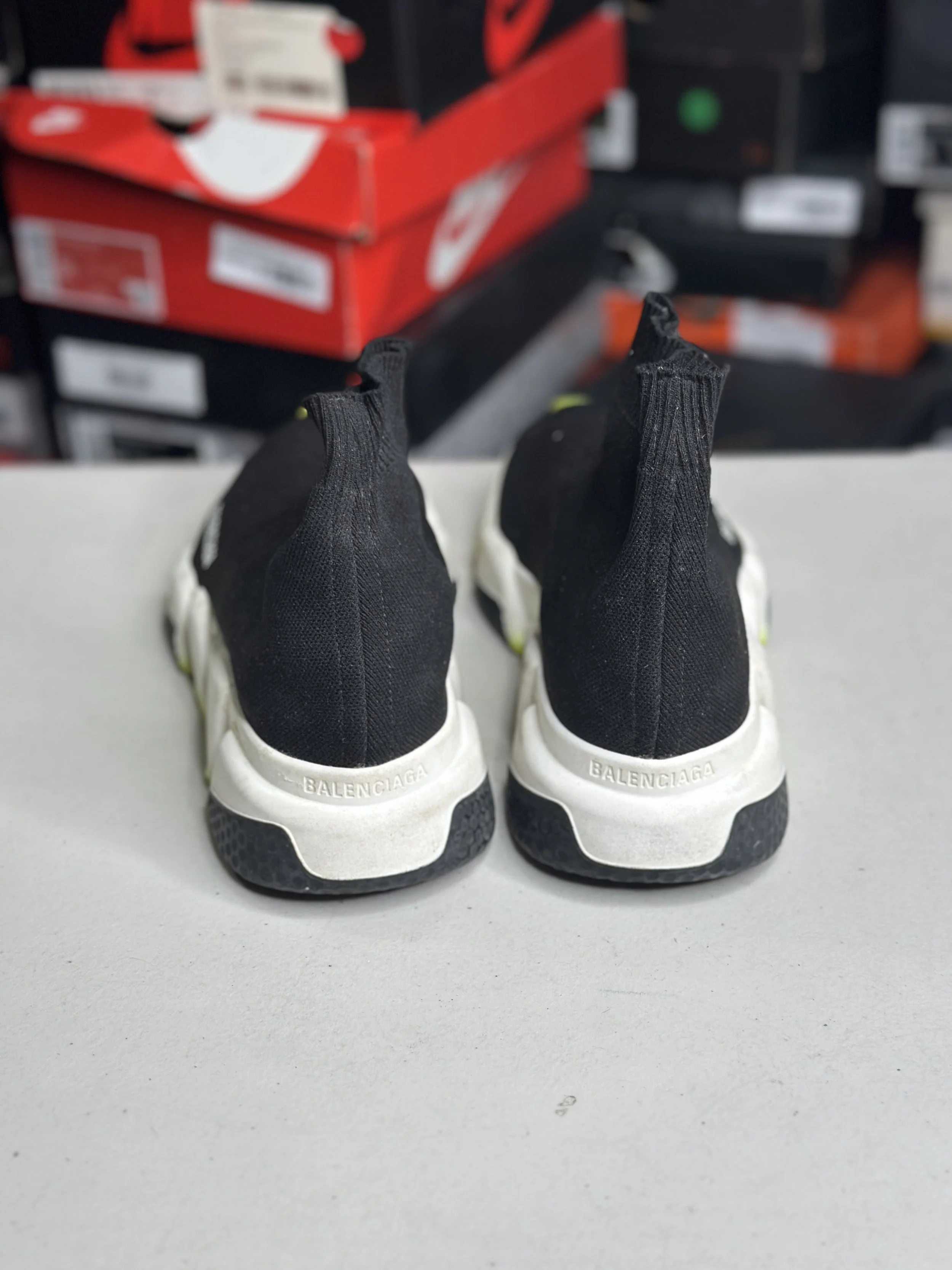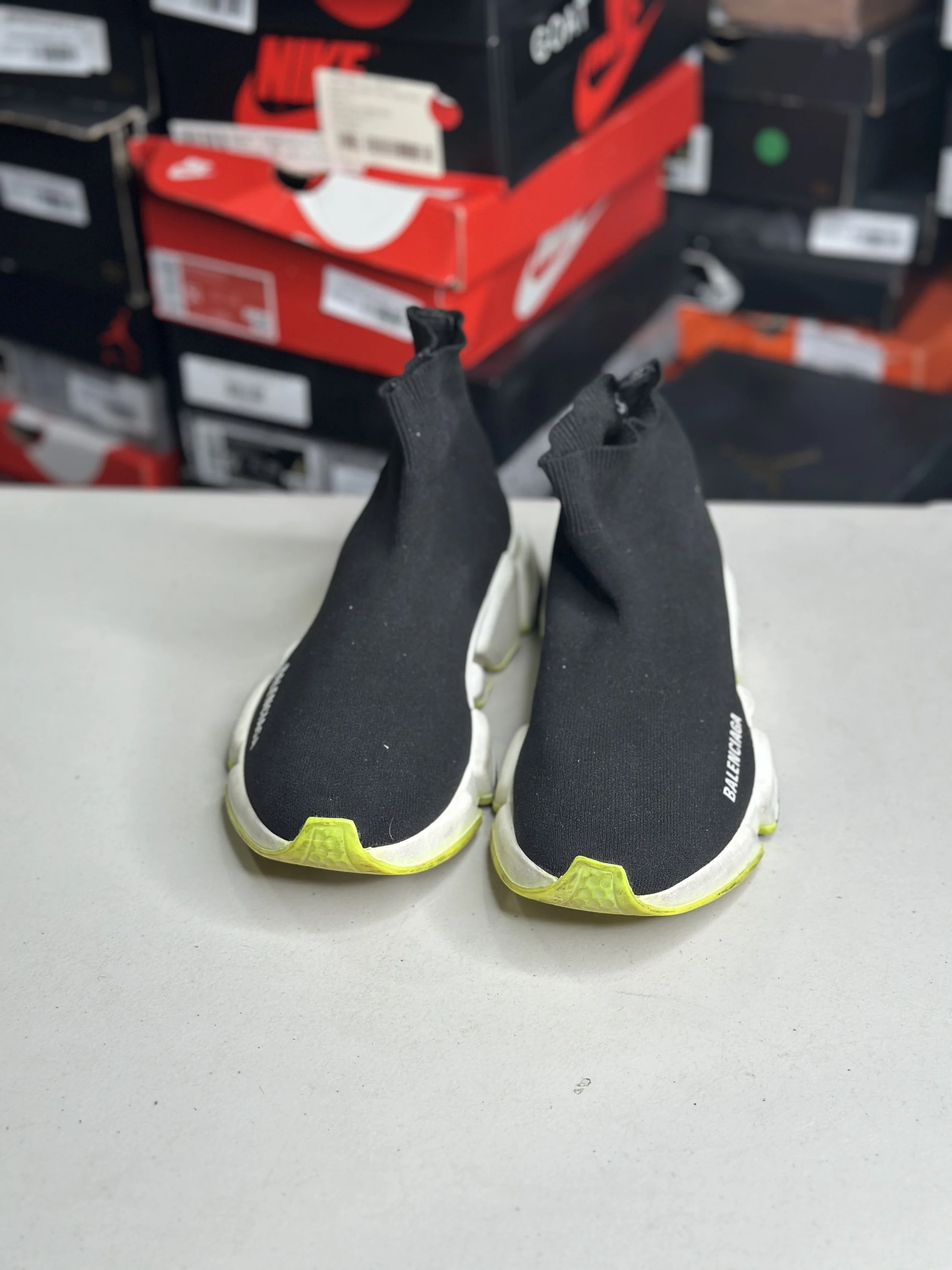 Shop By Size › Balenciaga Black Neon Sock Runner (Size 6) ° Image 1 of 4 Image 2 of 4 Image 3 of 4 Image 4 of 4 Balenciaga Black Neon Sock Runner (Size 6) ° $69.99 SOLD OUT Worn (no box) SOLD OUT Added! Worn (no box)