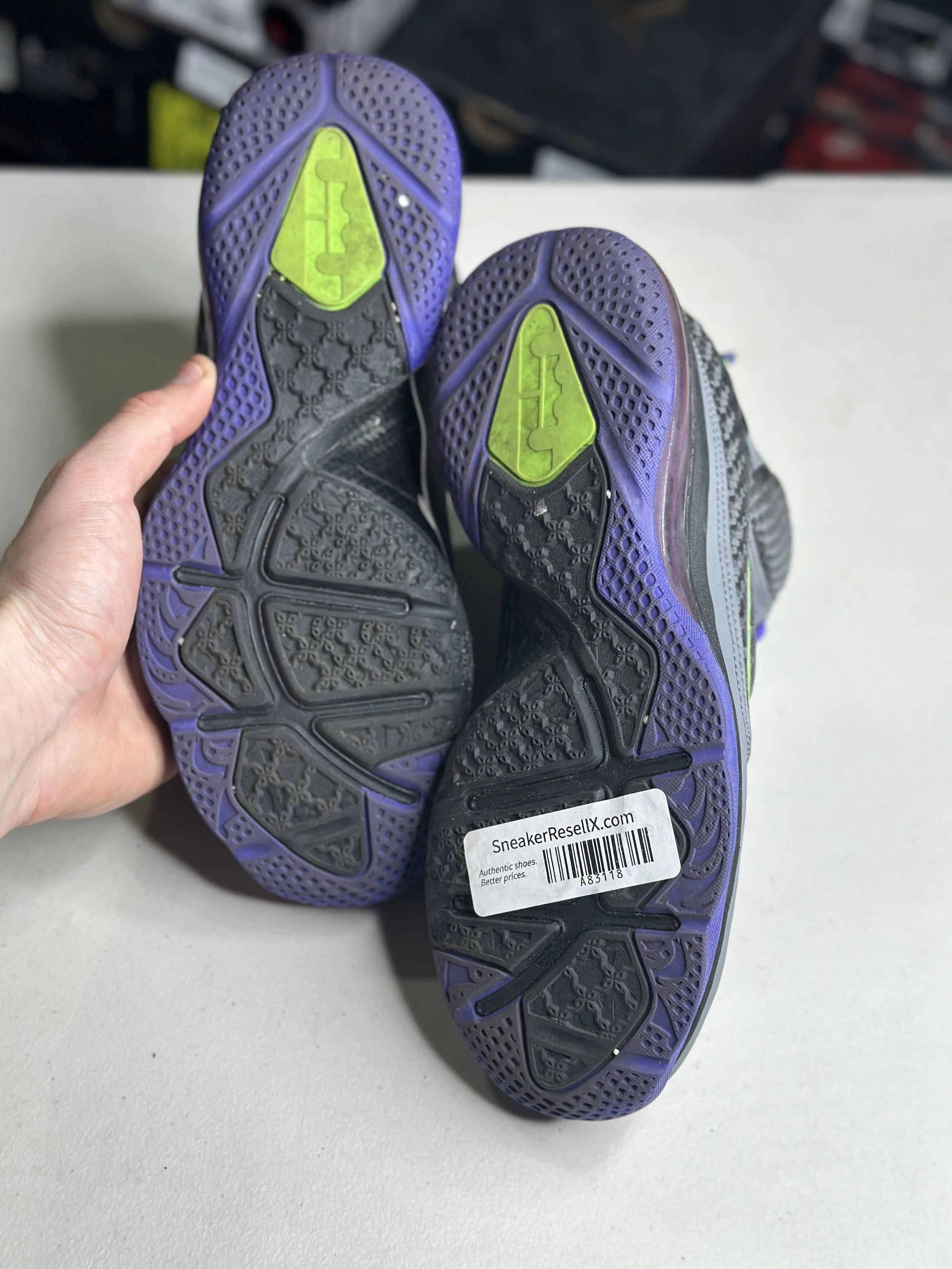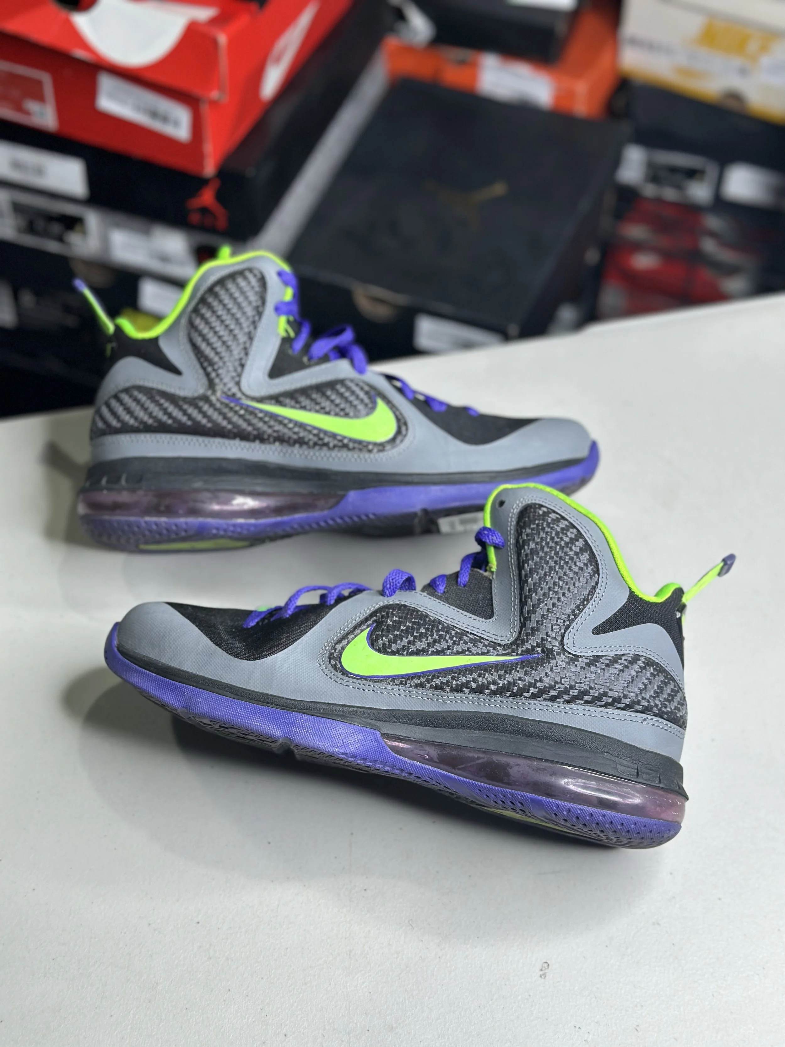 Shop By Size › Nike Lebron 9 Green/Purple GS (Size 7) Image 1 of 4 Image 2 of 4 Image 3 of 4 Image 4 of 4 Nike Lebron 9 Green/Purple GS (Size 7) $29.99 Worn (with box) Purchase Added! Worn (with box)