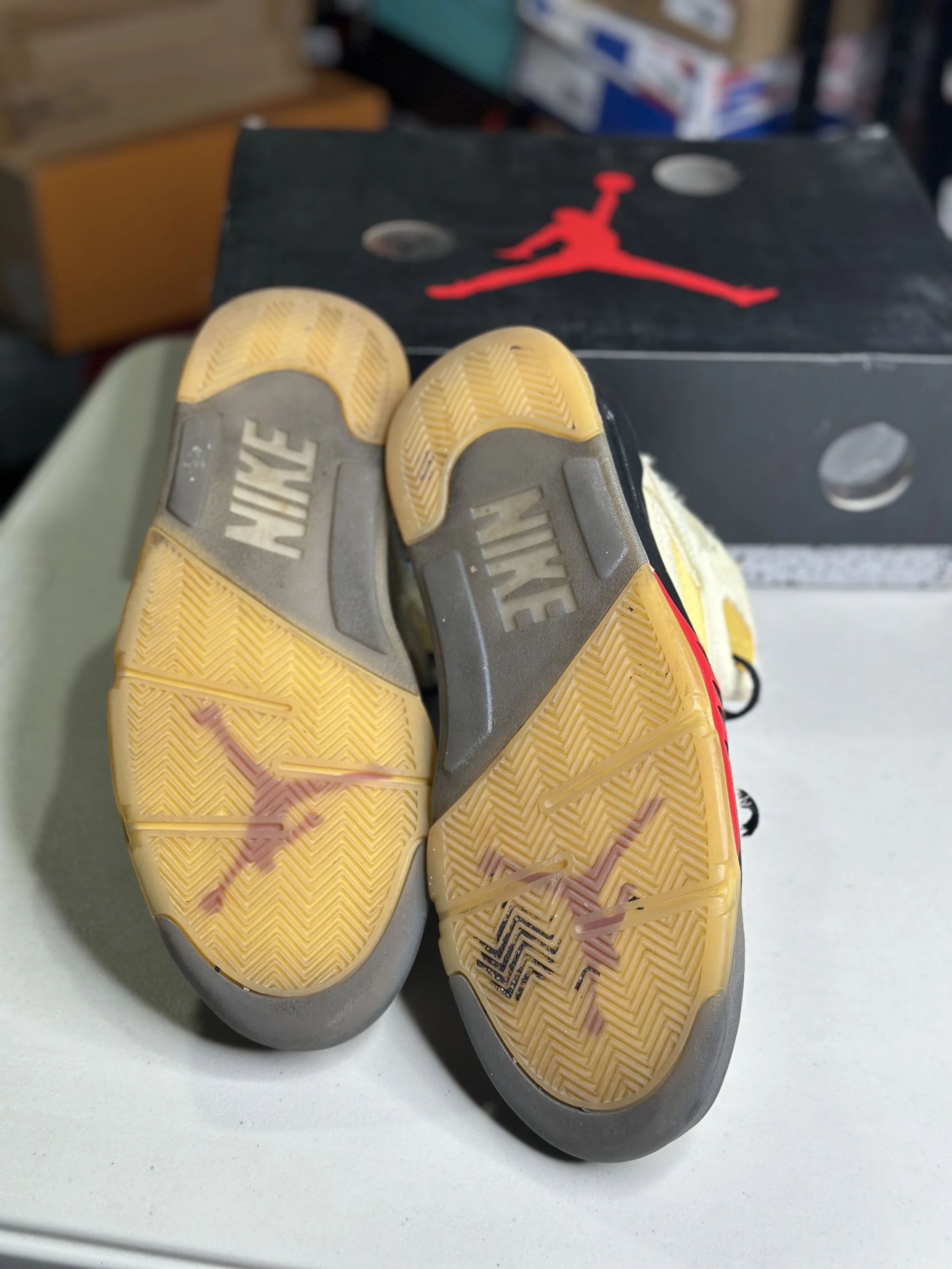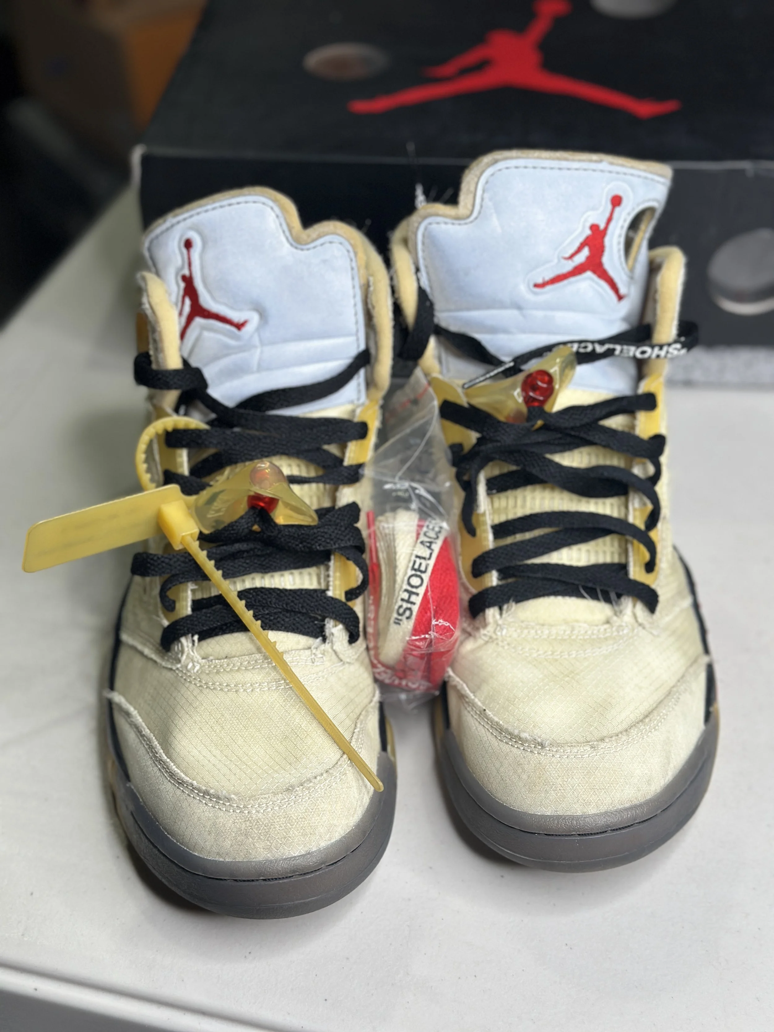 Shop By Size › Air Jordan 5 Off-White Sail (Size 9.5) Image 1 of 5 Image 2 of 5 Image 3 of 5 Image 4 of 5 Image 5 of 5 Air Jordan 5 Off-White Sail (Size 9.5) $239.99 worn (with box) Purchase Added! worn (with box)
