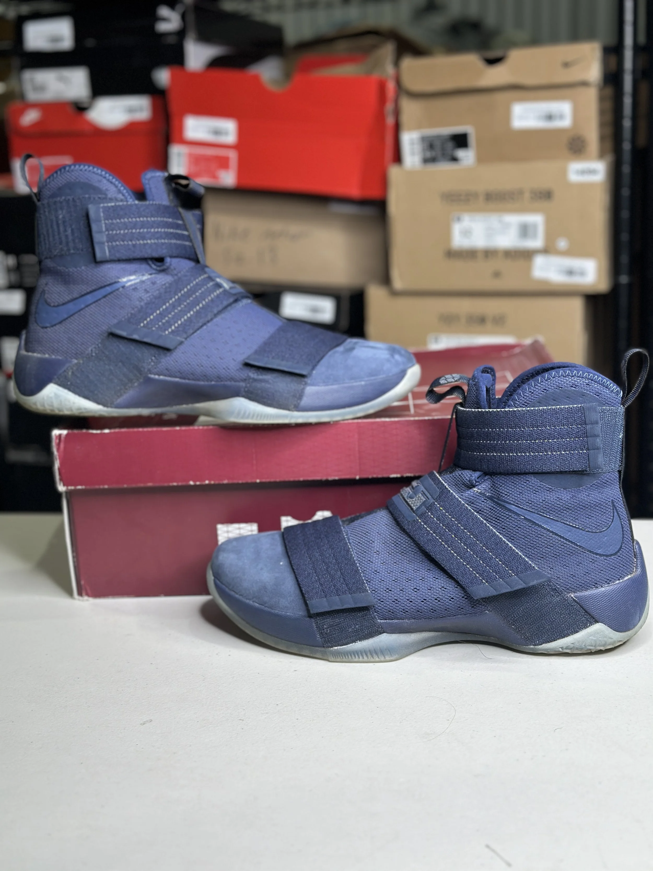 Shop By Size › LeBron Solider Blue (Size 10) Image 1 of 4 Image 2 of 4 Image 3 of 4 Image 4 of 4 LeBron Solider Blue (Size 10) $49.99 Worn (with box) Purchase Added! Worn (with box)