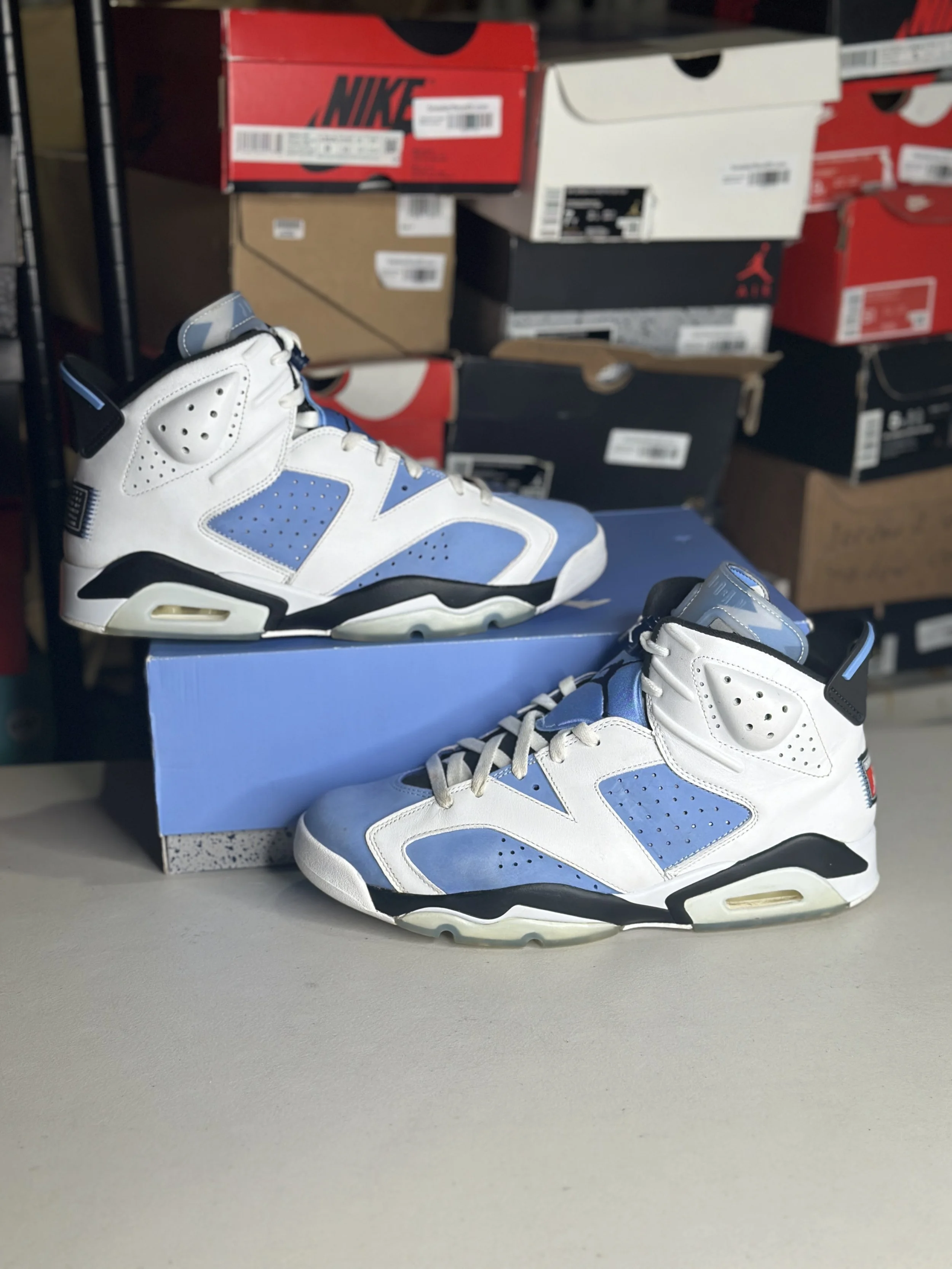 Shop By Size › Jordan 6 UNC (Size 12) Image 1 of 4 Image 2 of 4 Image 3 of 4 Image 4 of 4 Jordan 6 UNC (Size 12) $99.99 Worn (with box) Purchase Added! Worn (with box)