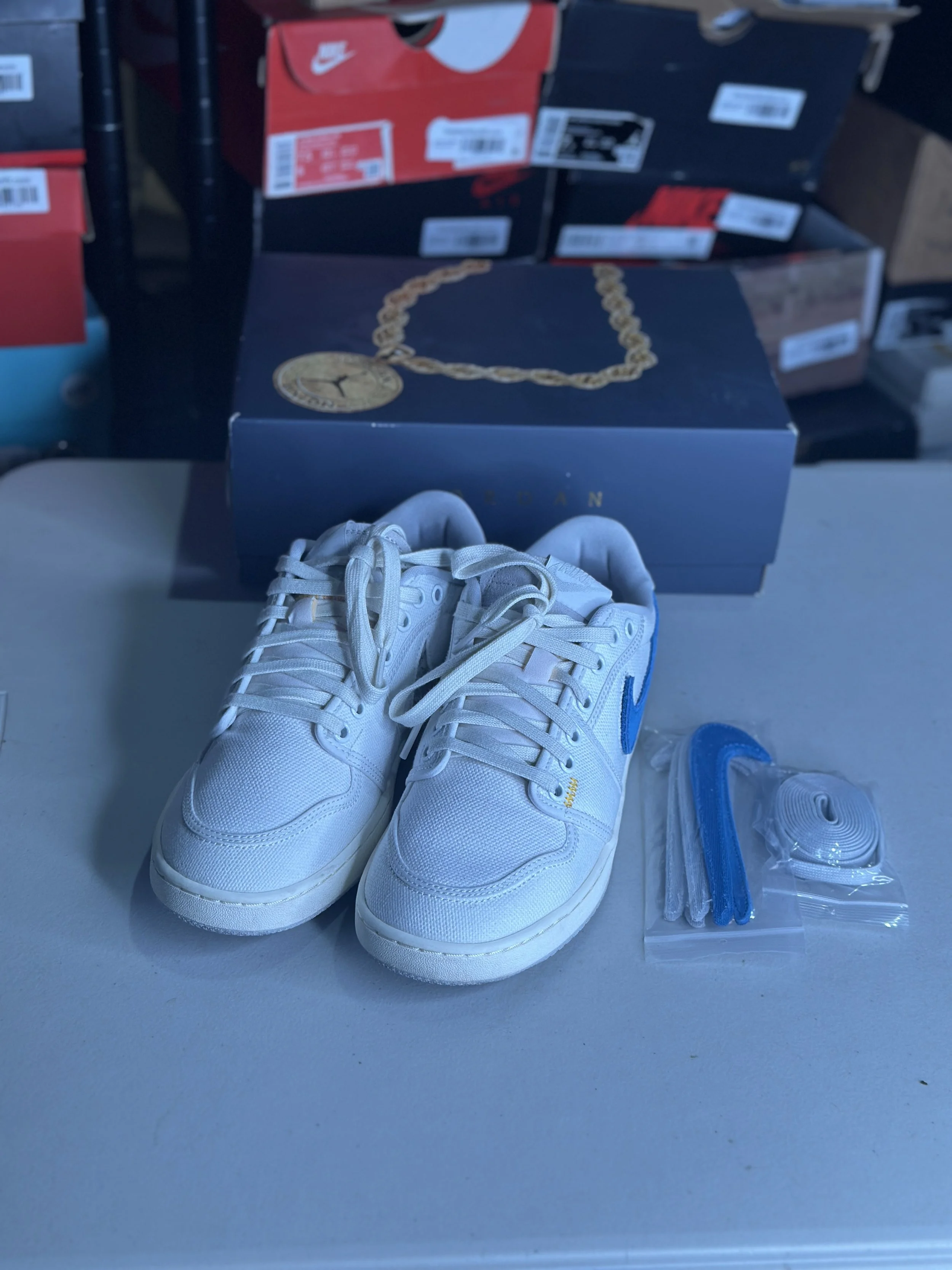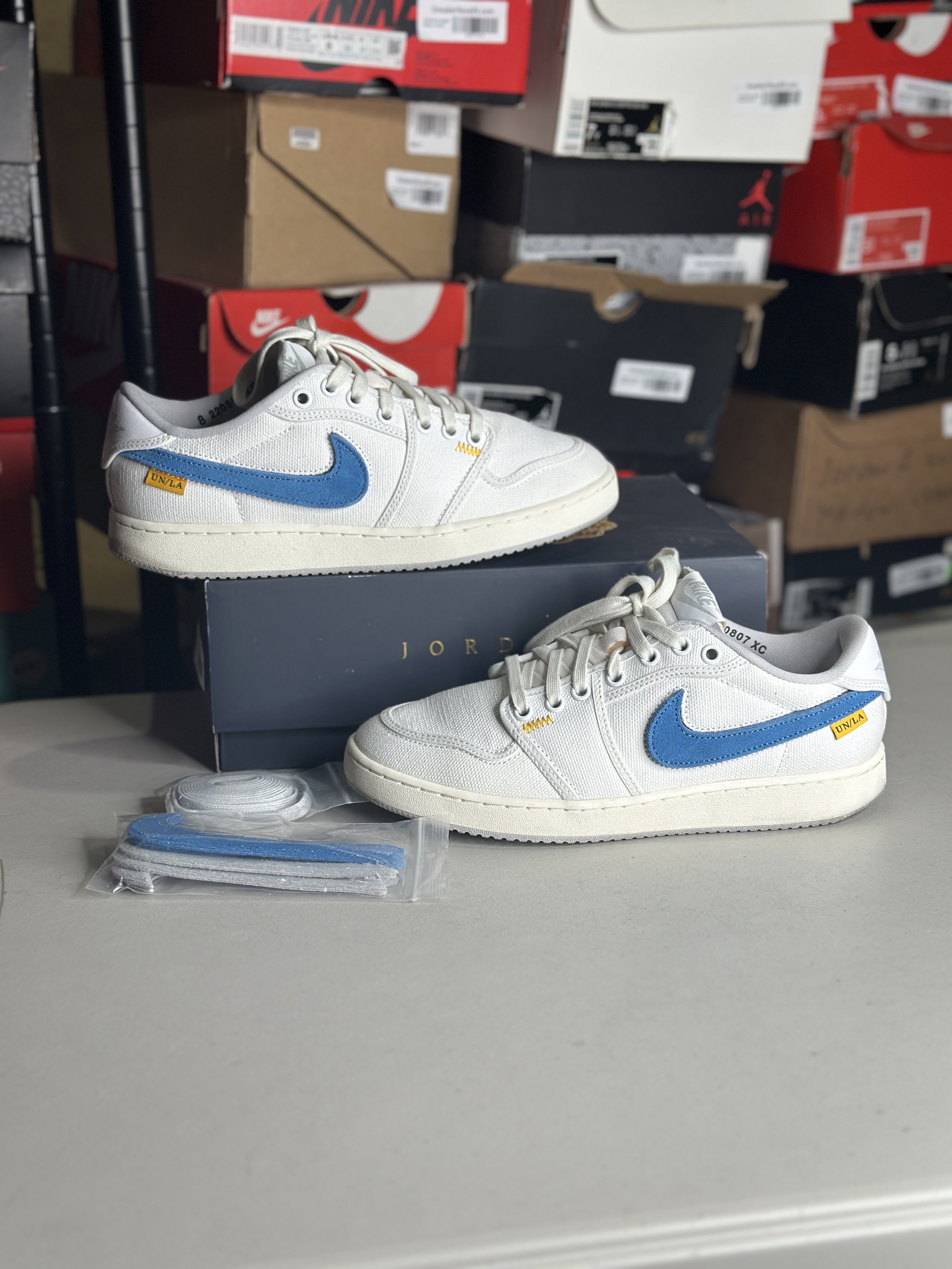 Shop By Size › Union LA x Air Jordan 1 KO Low 'White Neutral Grey' (Size 8) Image 1 of 3 Image 2 of 3 Image 3 of 3 Union LA x Air Jordan 1 KO Low 'White Neutral Grey' (Size 8) $59.99 Worn (with box) Purchase Added! Worn (with box)