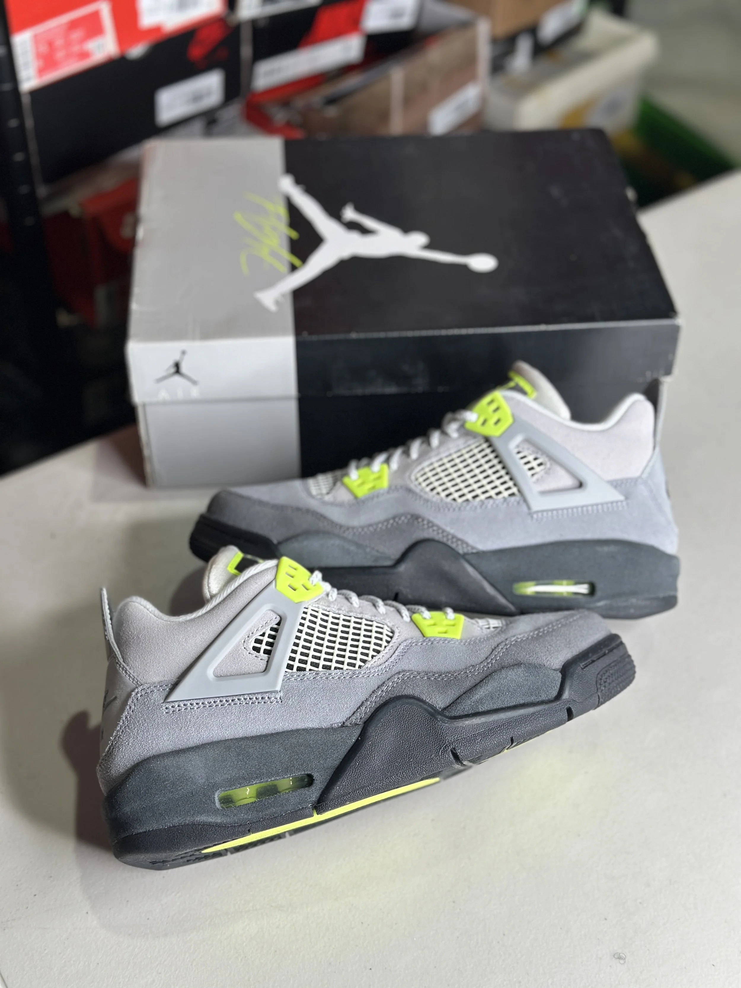 Shop By Size › Jordan 4 Neon GS (Size 6.5) Image 1 of 4 Image 2 of 4 Image 3 of 4 Image 4 of 4 Jordan 4 Neon GS (Size 6.5) $99.99 Worn (with box) Purchase Added! Worn (with box)