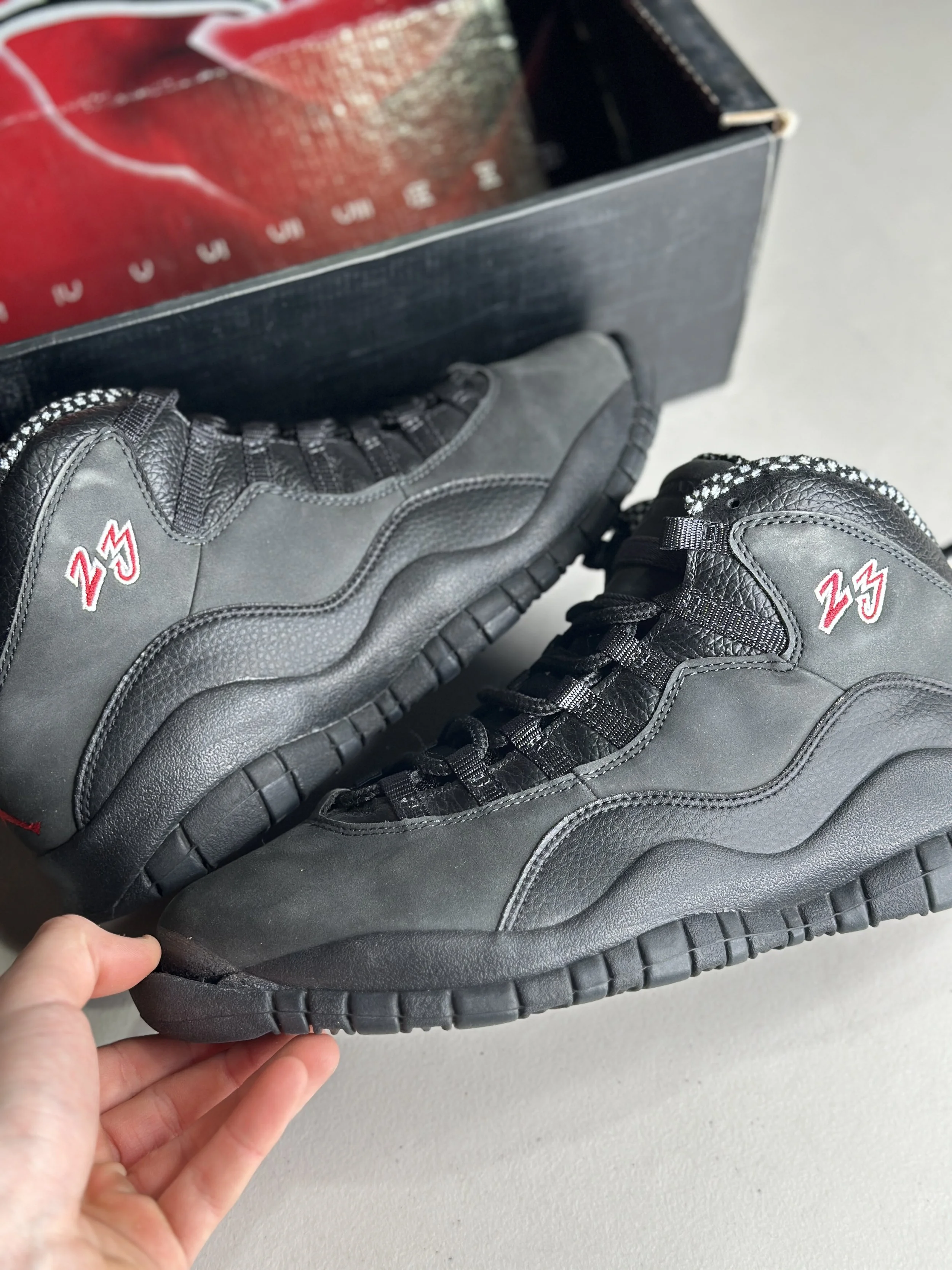 Shop By Size › Jordan 10 Bulls FLAWED (Size 9) Image 1 of 1 Jordan 10 Bulls FLAWED (Size 9) $0.00 SOLD OUT Worn (with box) TOE BOX SEPERATION SOLD OUT Added! Worn (with box) TOE BOX SEPERATION