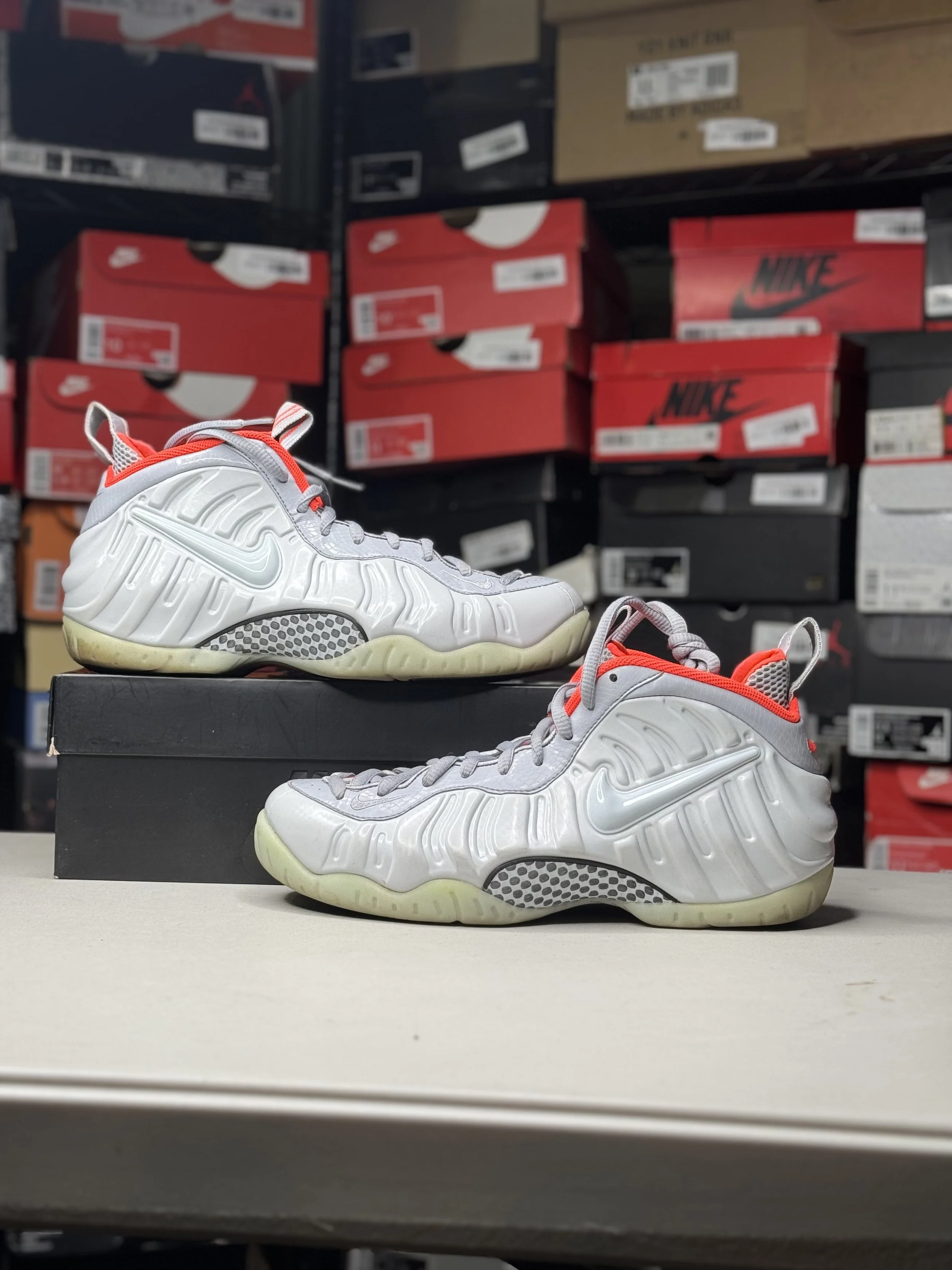Shop By Size › Nike Air Foamposite Yeezy Pure Platinum (Size 10.5) Image 1 of 4 Image 2 of 4 Image 3 of 4 Image 4 of 4 Nike Air Foamposite Yeezy Pure Platinum (Size 10.5) $129.99 Worn (WITH BOX) Purchase Added! Worn (WITH BOX)